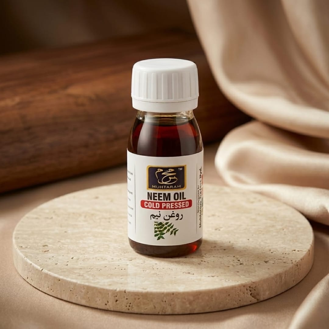 Neem Oil (Cold Pressed) is a powerful natural oil extracted from neem seeds without heat, preserving its nutrients and effectiveness. It is widely used for skin, hair, and scalp care due to its antibacterial and antifungal properties.
