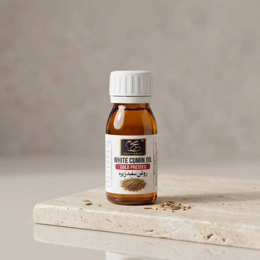 Pure White Cumin Oil (Cold Pressed) for digestion and overall wellness. Helps reduce bloating, supports metabolism, and promotes a healthy body.